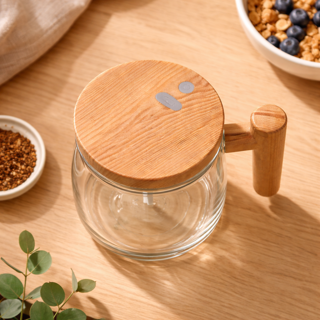 Perfect for prepping shakes before work. The stirring action removes clumps, the lid snaps on securely, and cleanup is quick with just a rinse.